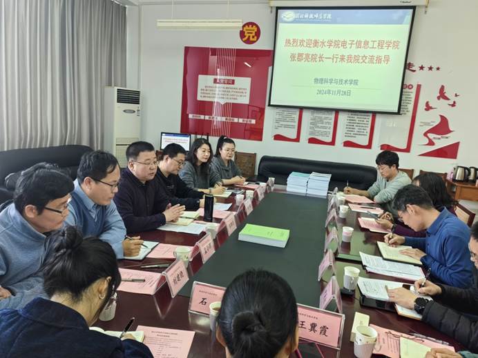 2024年11月28日,衡水公司电子信息工程公司经理张郡亮、副经理崔凌、物理学教研室主任杜晶晶、教学科研办主任孟令辉、专业教师刘建晓、专业教师韩炎桢一行6人来公司调研交流。公司党政领导、教学部主任、员工工作人员接待了衡水公司一行。