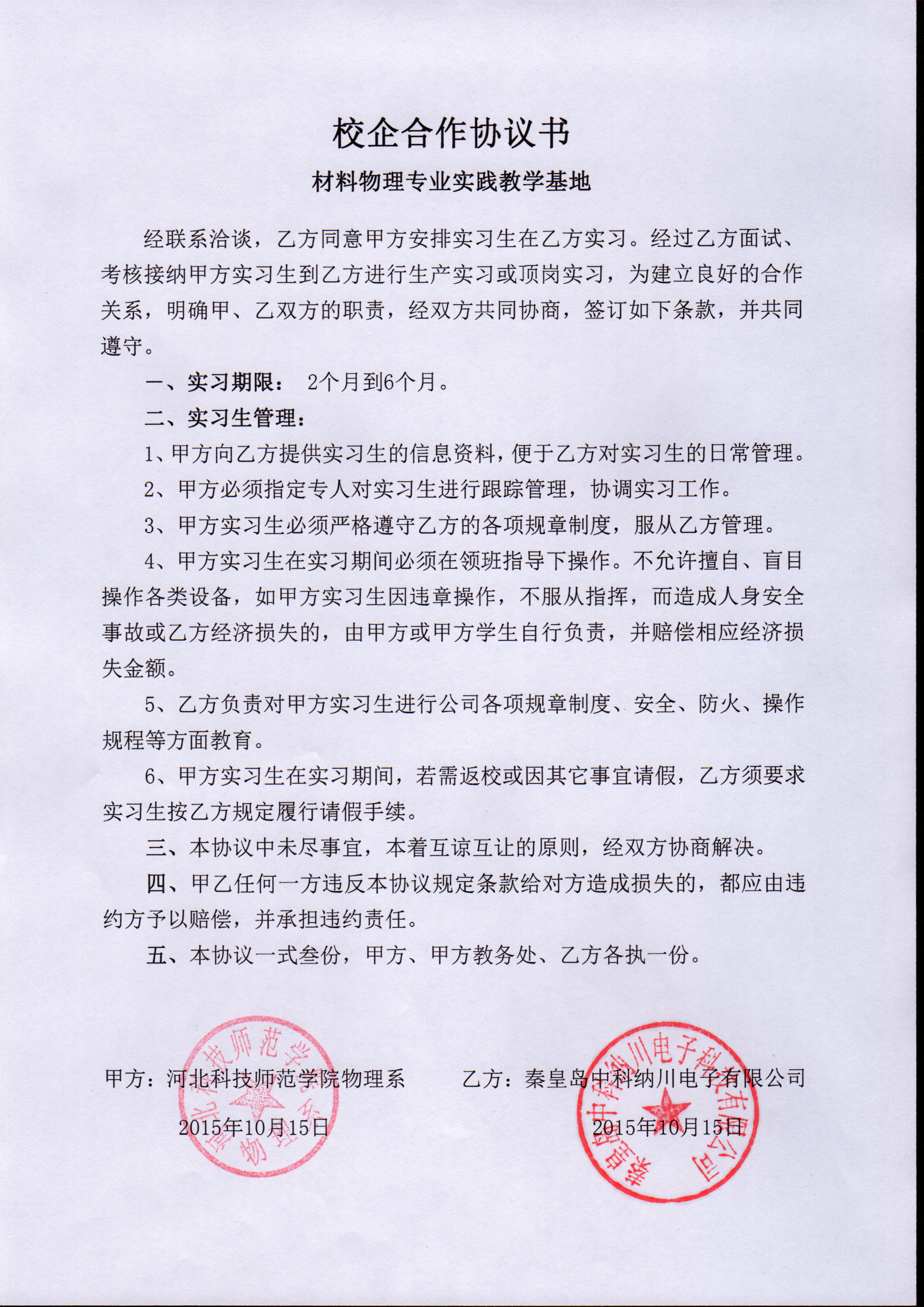 物理系建立秦皇岛中科纳川电子科技有限公司校外实习基地